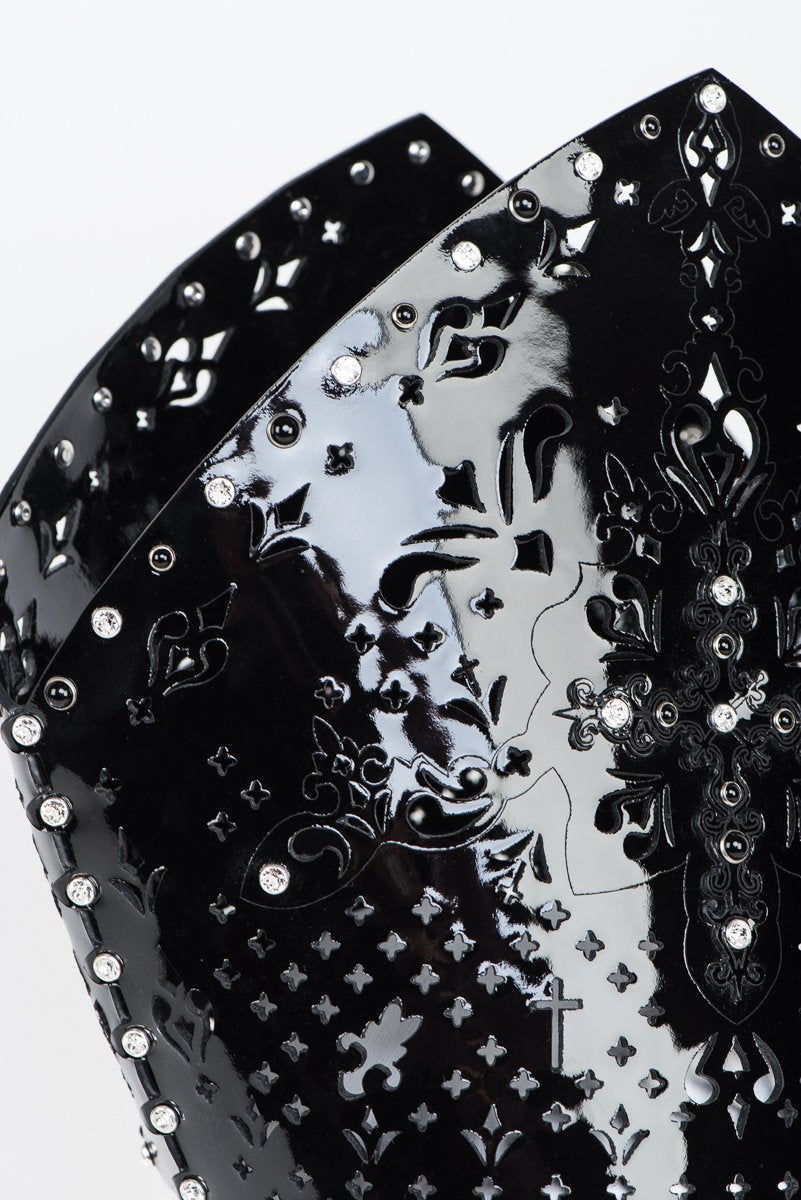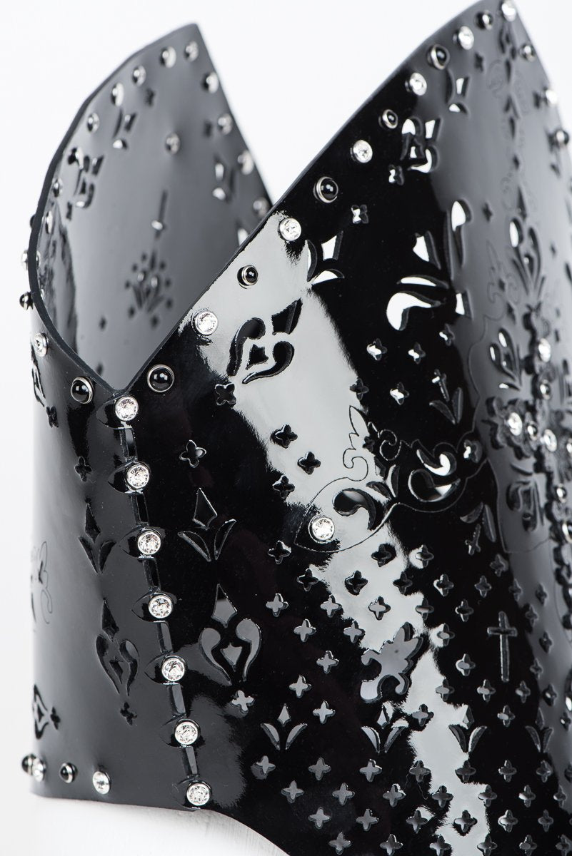 • Custom Laser Cut Black Patent Leather Panels with large eye holes